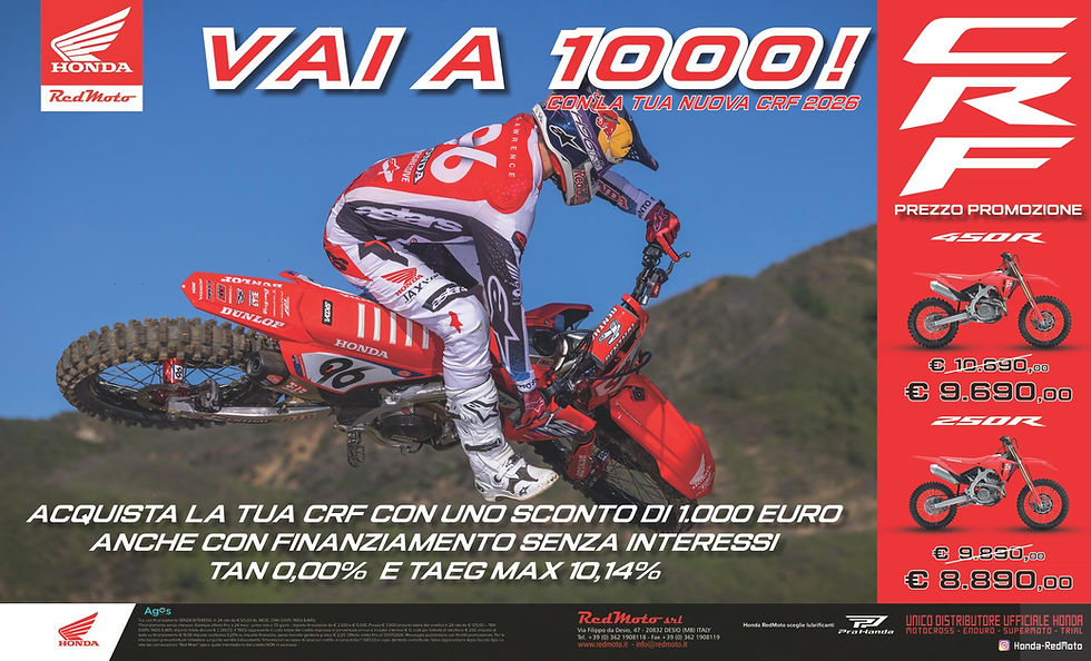 Torna la promozione "VAI A MILLE" di RedMoto, che prevede 1.000 euro di sconto sulle CRF250R e CRF450R 2026