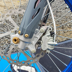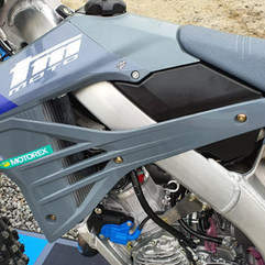 Il sistema di gestione della valvola di scarico è stato progettato in TM e sfrutta un motorino SBS che attiva una sorta di camma che apre la valvola centrale e i due booster laterali come se fosse una distribuzione 4T. In abbinamento alla novità arriva una termica completamente rivista, uno scarico (inteso marmitta e terminale) ridisegnati da Scalvini e un basamento tutto nuovo. All'interno troviamo una frizione con molla a tazza e l'avviamento elettrico integrato. Il cambio è ovviamente a 6 marce. A proteggere il tutto, coperchi carter alettati, come di solito si vede sulle TM 4 tempi di grossa cilindrata e un paramotore dedicato sotto.